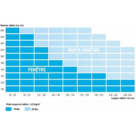 - Moteur prévu pour les tubes d’enroulement possédant un diamètre d’au moins 50mm et avec une puissance de 10Nm pour soulever des volets avec un tablier ayant un poids moyen maximum de 4.5kg/m2 (non compatible avec les volets en bois).